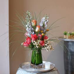 Price: $150.00Roses, tulips With a citrus pallette